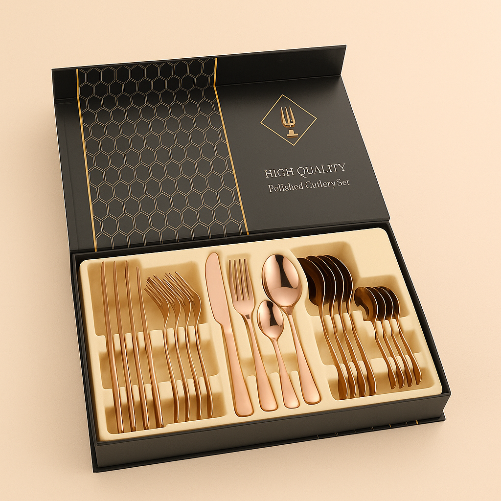 Compleet voor 6 personen: Inclusief messen, vorken, eetlepels én koffielepels – alles wat je nodig hebt in één uitgebreide set. Ideaal voor romantische diners, speciale gelegenheden, gezellige familiebijeenkomsten of zelfs professioneel gebruik in horeca of hotels.