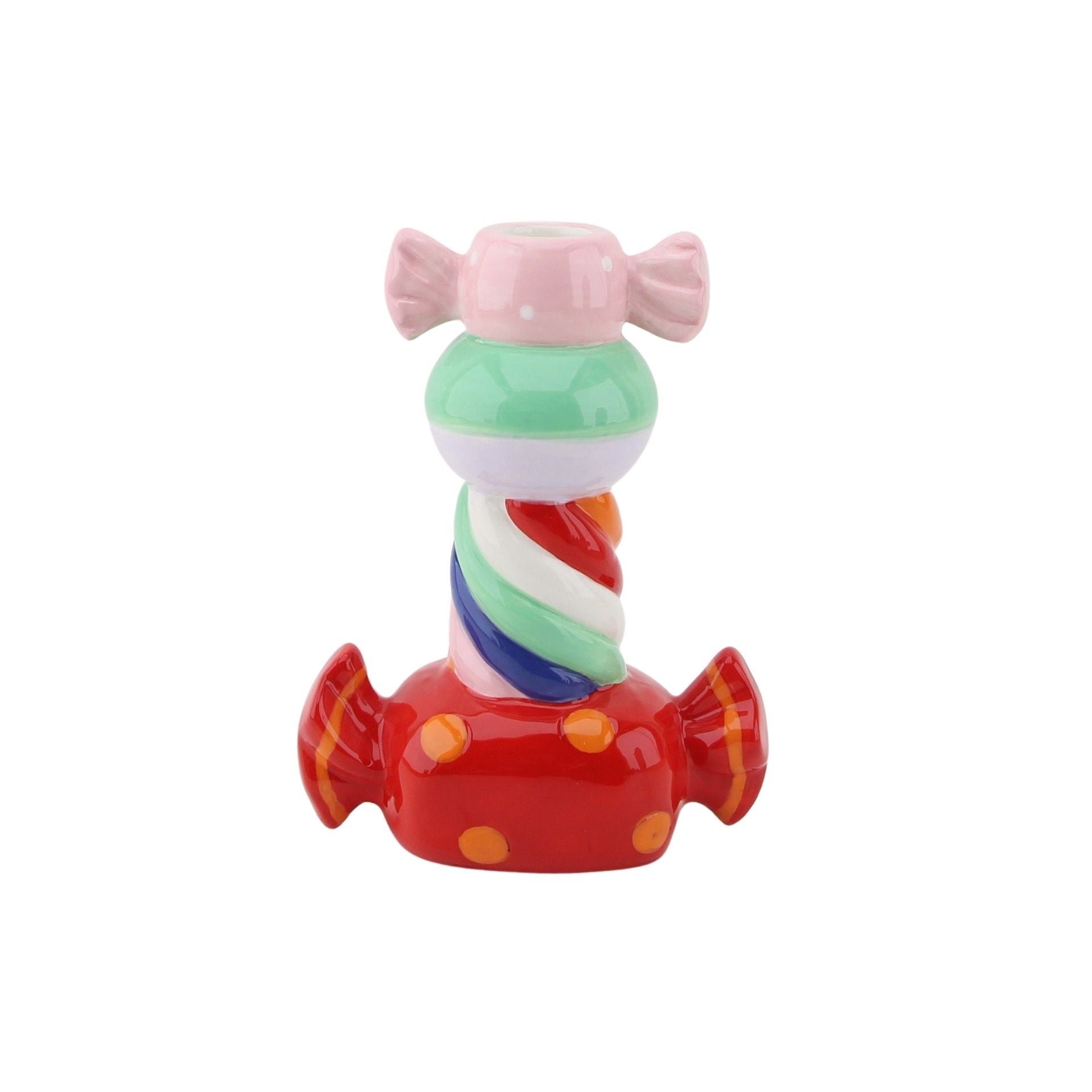 SNOEPERDS OPGELET! Breng een speelse en kleurrijke sfeer in huis met deze unieke kaarshouder in de vorm van gestapelde snoepjes! De vrolijke verschillende kleur tinten maken van deze kandelaar een echte blikvanger, perfect voor iedereen die houdt van een beetje fun in het interieur. Gemaakt van stevig dolomiet en met een afmeting van 13 x 7 x 20 cm is hij ideaal voor op de eettafel, vensterbank of als opvallend detail op een dressoir.