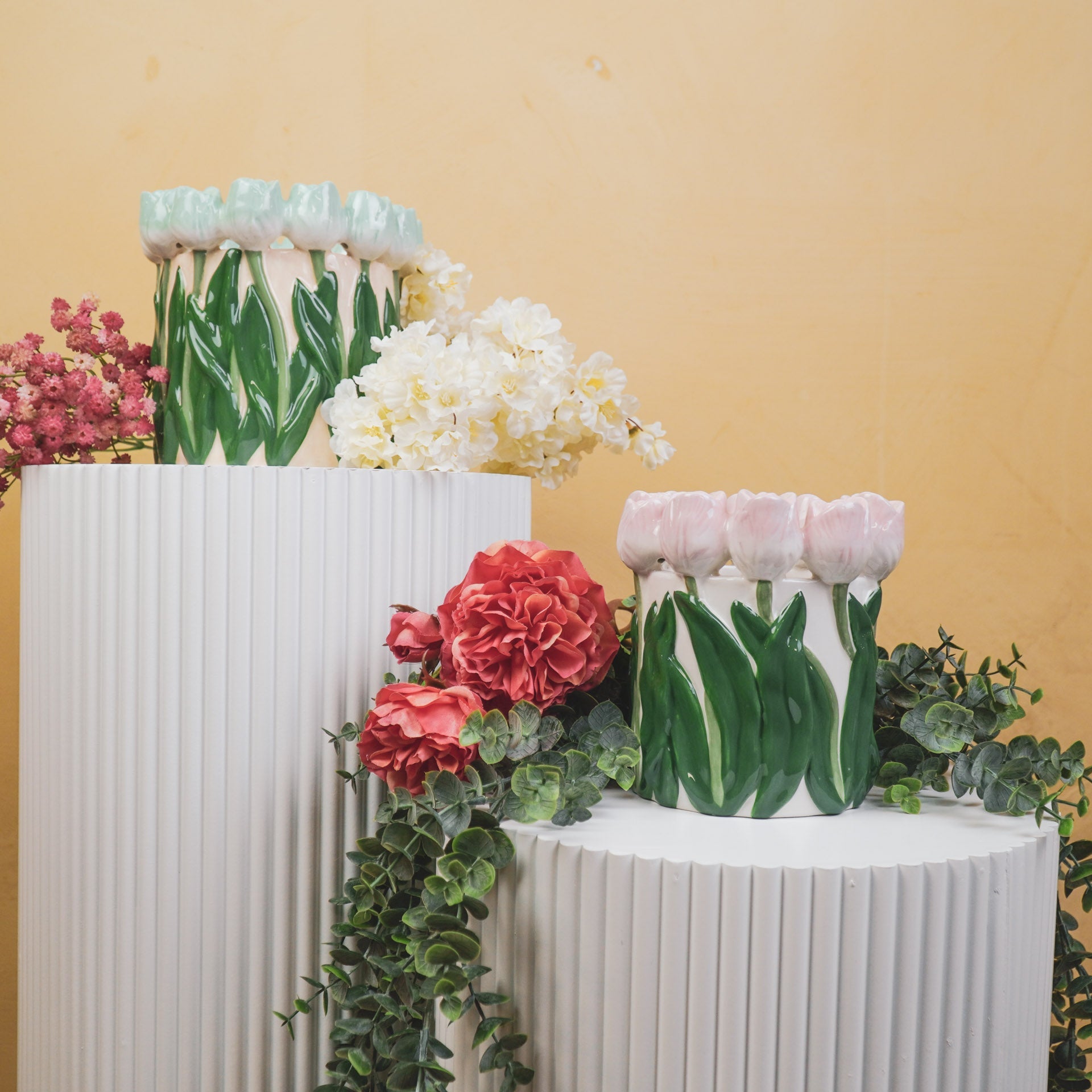 Styling tip: Kies bloemen in dezelfde kleuren als de tulp vaas en je hebt ton sur ton!