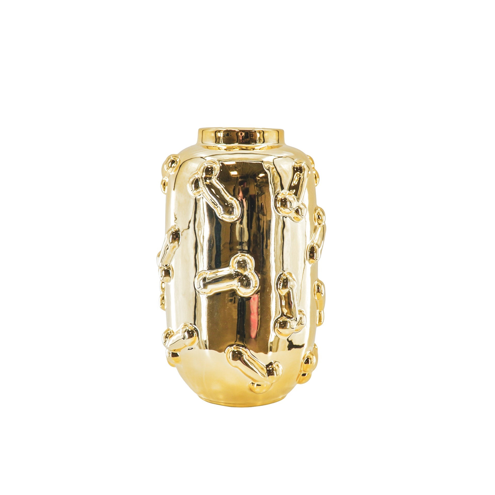 Belangrijke kenmerken: - Gemaakt van keramiek - Waterdicht - Gouden bloemenvaas met piemel design - Afmeting: 17x17x27 cm - Inhoud: 3,4 liter - Van het merk Housevitamin - Perfect voor het toevoegen van een vrolijke touch aan je interieur - Maak een statement in huis met deze opvallende vaas - Een eyecatcher voor in iedere kamer