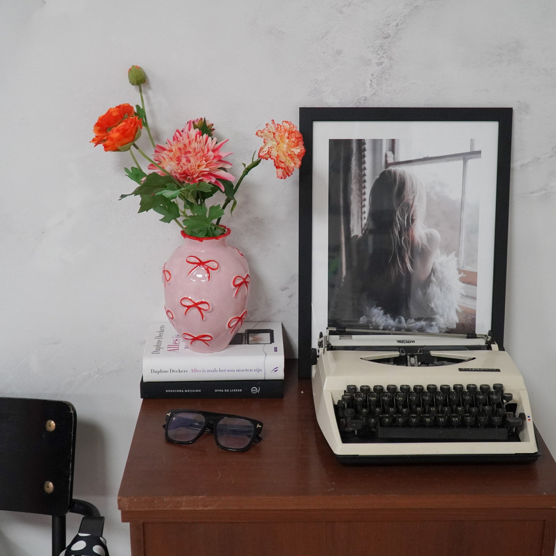 Stylingtip: Combineer deze vaas met lichte pasteltinten voor een zachte, romantische uitstraling of met felle bloemen voor een vrolijke en opvallende look. Ook zonder bloemen is deze vaas met strikjes een charmante toevoeging aan je interieur!