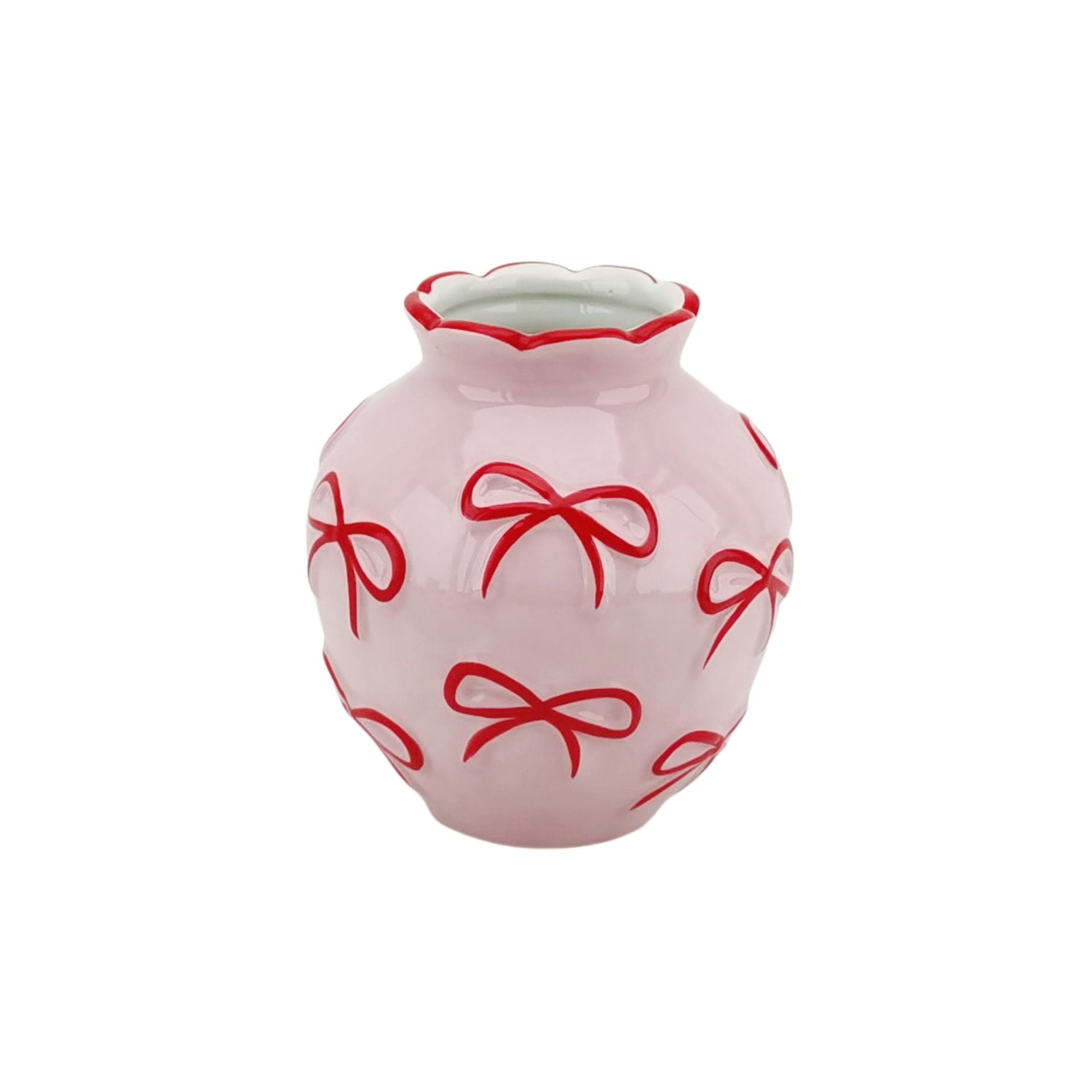 Stylingtip: Combineer deze vaas met lichte pasteltinten voor een zachte, romantische uitstraling of met felle bloemen voor een vrolijke en opvallende look. Ook zonder bloemen is deze vaas met strikjes een charmante toevoeging aan je interieur!