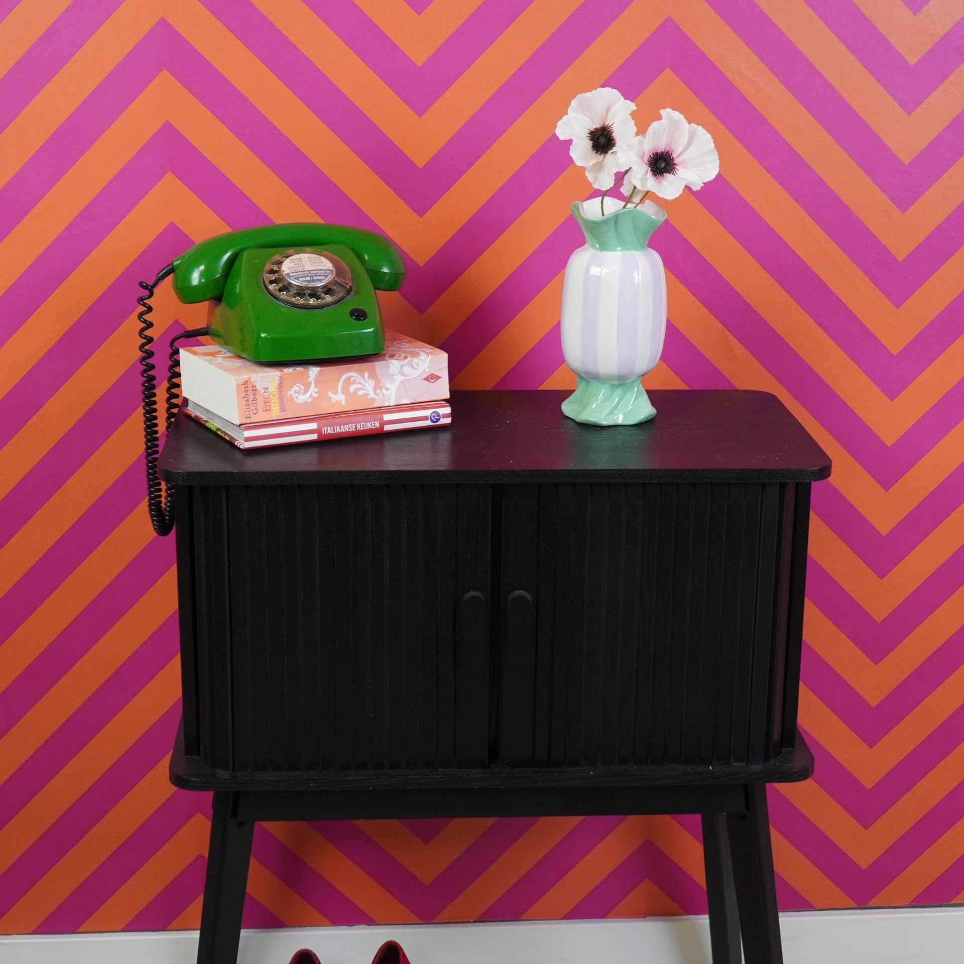 Styling tip: Maak het effect van deze vrolijke toffee snoepjesvaas extra speels door er een bont boeket met kleurrijke bloemen in te zetten, zoals gerbera’s, ranonkels of tulpen in verschillende tinten roze, oranje en geel. Voor een extra zoete twist kun je rondom de vaas kleine (nep)snoepjes of miniatuur snoepdecoraties leggen, zodat het geheel eruitziet als een feestje op tafel. Zo versterk je het speelse karakter van de vaas en wordt hij een echte blikvanger in je interieur!